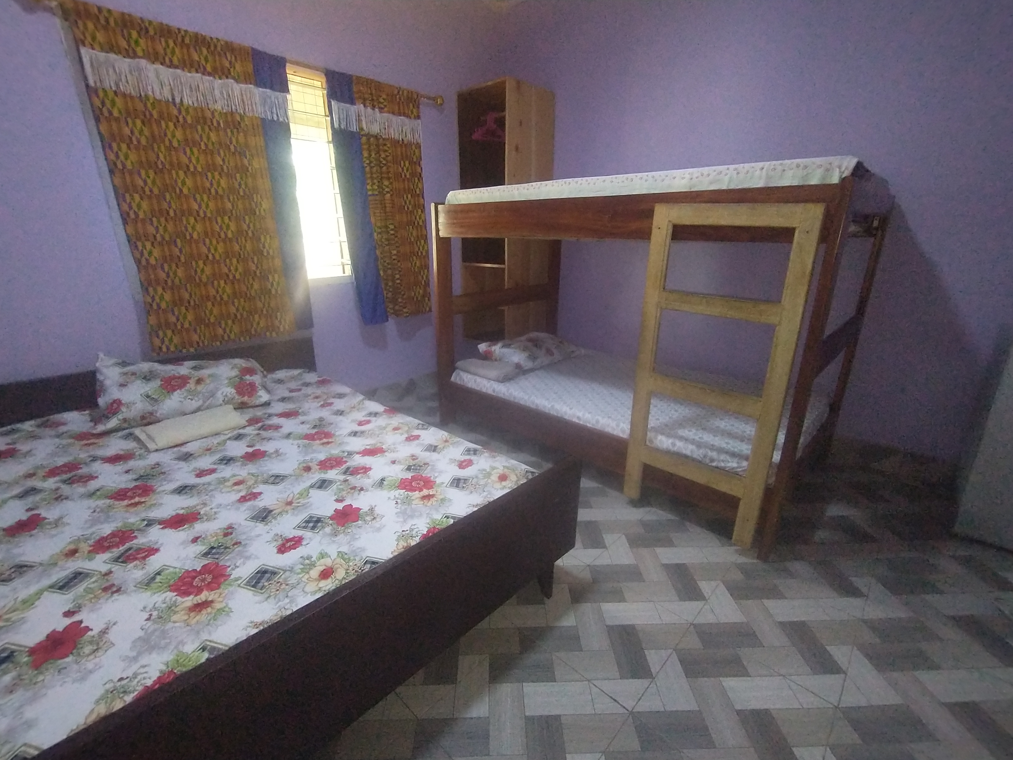 we welcome you to a peaceful home away from home in the heart of Kwahu , a serene forest-view homestay where comfort, privacy, and cultural immersion meet.What’s more, our dedicated transport is always ready to take you on exciting tours, food runs, or evening hangouts , and bring you right back with ease. Meals are served just nearby at Kwame’s house eating area for cooking convenience, which includes a modern latrine facility. Whether you’re with friends or on your own, this is your base to explore Kwahu while feeling truly at home.